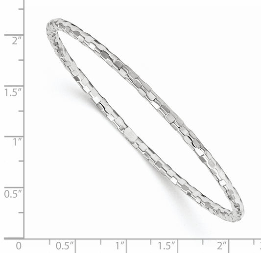 14k White Gold Polished Diamond-cut Slip-on Bangle