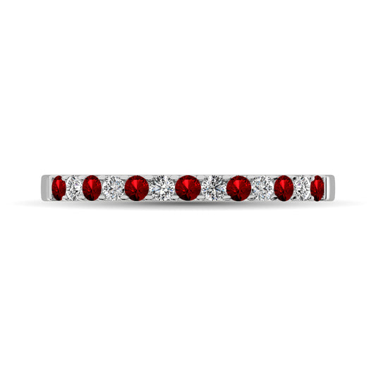 14K White Gold Machine Band 1/4 ct tw Alternate Garnet and Diamond