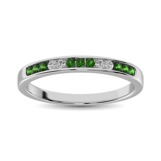 14K White Gold 1/6 Ctw Tsavorite & Diamond Machine Band