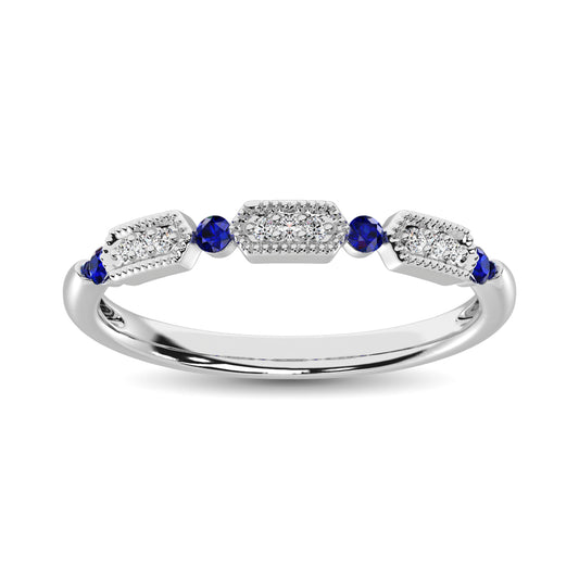 14K White Gold Alternate Diamond 1/5 Ctw and Blue Saphire Ring