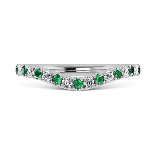 14K White Gold Emerald and Diamond 1/3 Ct.Tw. Curve Band