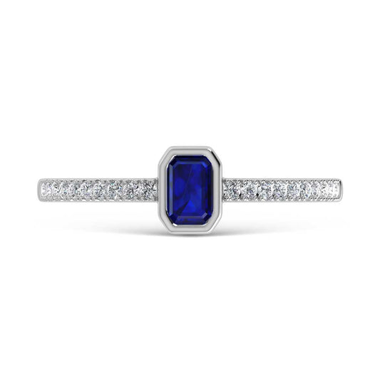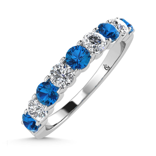14K White Gold Diamond 3/8 Ct.Tw. And Blue Sapphire Fashion Ring
