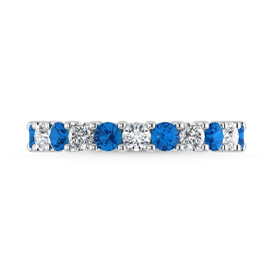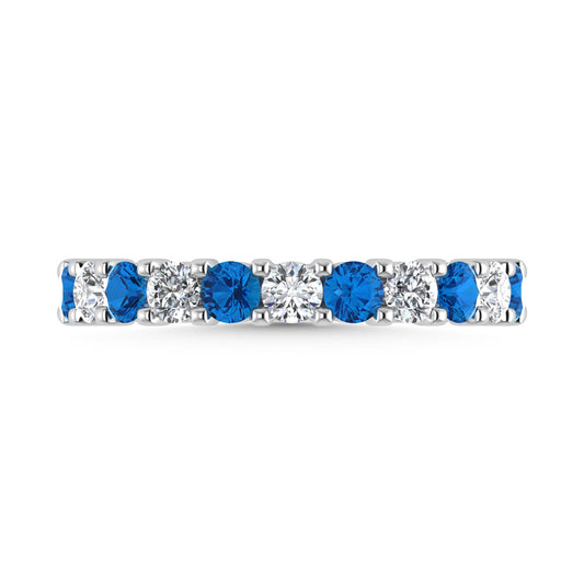 14K White Gold Machine Set Alternate Blue Sapphire and Diamond 1/2 Ct.Tw. Band