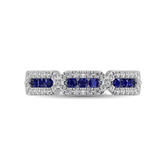 14K White Gold 5/8 Ct.Tw. Diamond & Blue Sapphire Stackable Band