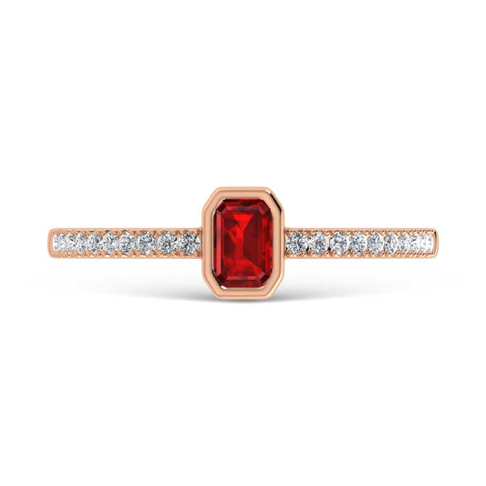 14K Rose Gold Diamond 3/8 Ct.Tw. And Ruby Fashion Ring