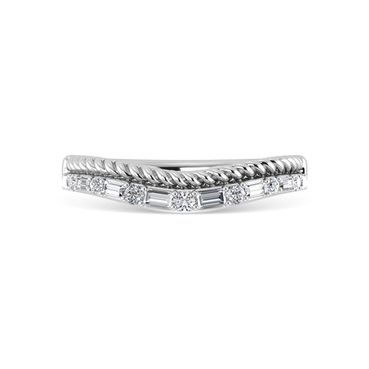 Diamond 1/5 ct tw Round and Baguette Chevron Band in 10K White Gold