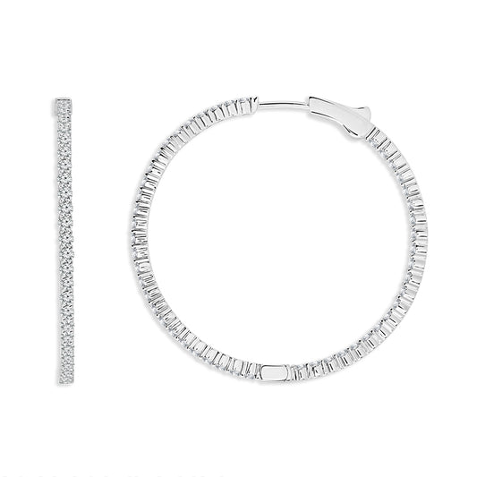 Diamond Hoops Earrings 3 ct tw 14k White Gold