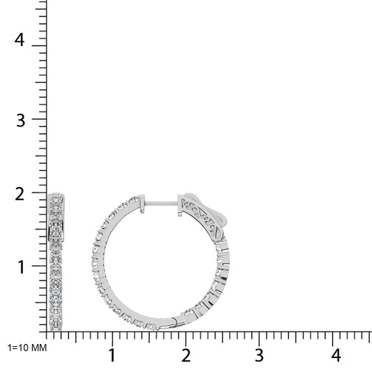 14K White Gold Lab Grown Diamond 2 Ct.Tw. In and Out Hoop Earrings