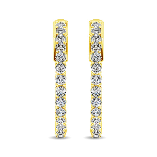 14K Yellow Gold Diamond 1 3/4 Ct.Tw. In and Out Hoop Earrings