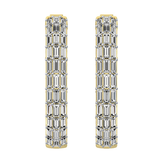 14K Yellow Gold 1 Ct.Tw. Diamond Baguette Set Hoop Earrings
