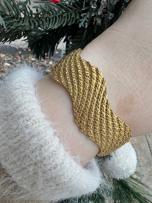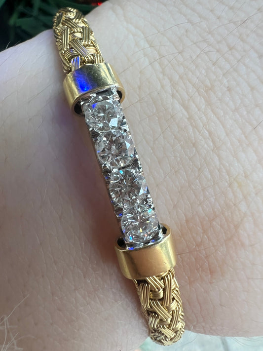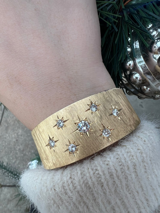 Brushed Gold and Diamond Celestial Hinge Bracelet