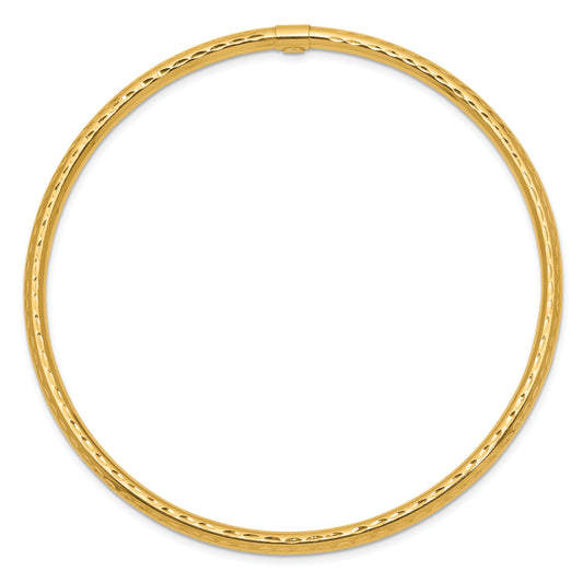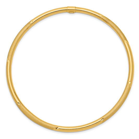 14k 3mm Satin Finish Diamon-cut Tube Slip-on Bangle