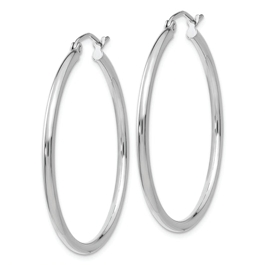 14k White Gold Polished 2x35mm Tube Hoop Earrings