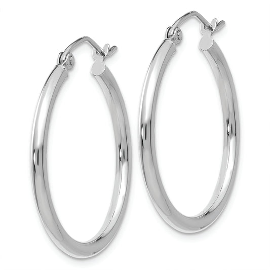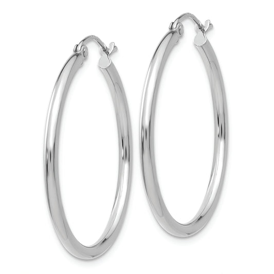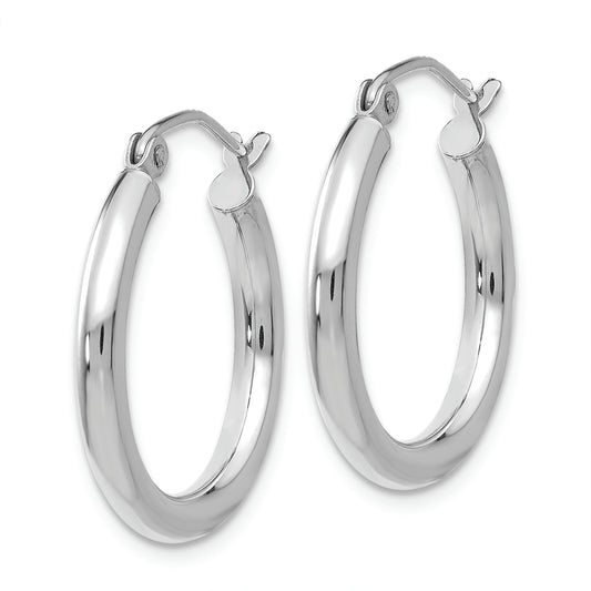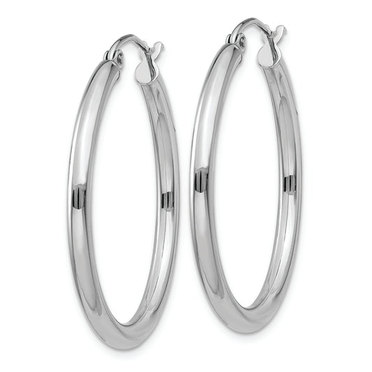14K White Gold Polished 2.5mm Lightweight Tube Hoop Earrings