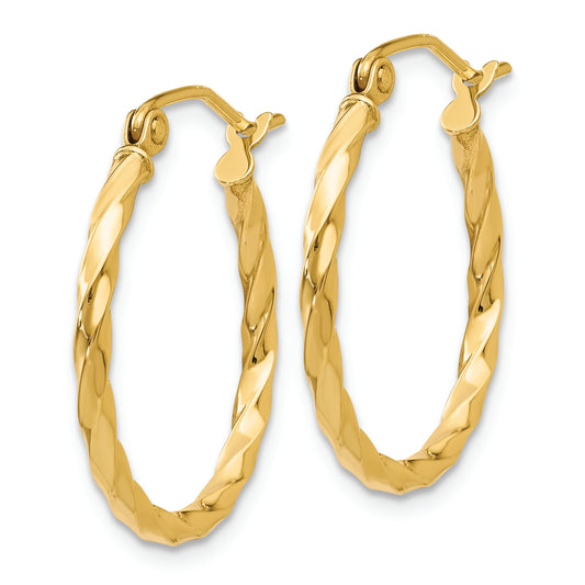 14k White Gold Polished 2x25mm Lightweight Tube Hoop Earrings