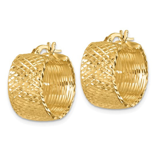 14K Polished and Satin Diamond-cut Hoop Earrings