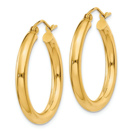 14K Polished 3mm Lightweight Tube Hoop Earrings