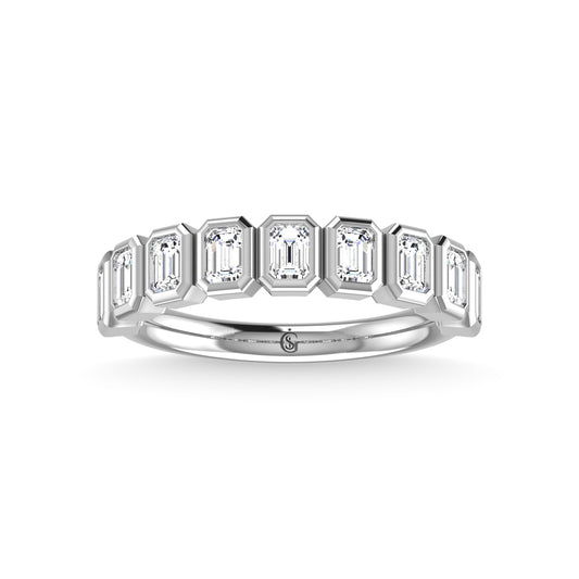 14K White Gold Diamond 7/8 Ct.Tw. Emerald Shape Half Way Bezel Band