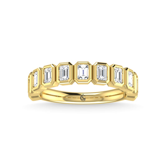 14K Yellow Gold Diamond 7/8 Ct.Tw. Emerald Shape Half Way Bezel Band
