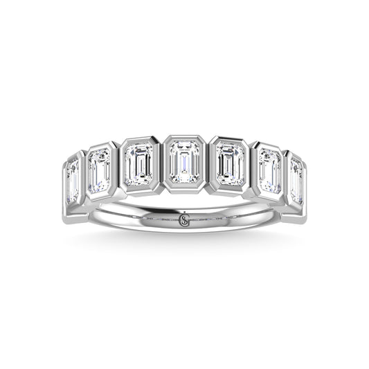 14K White Gold Diamond 1 3/4 Ct.Tw. Emerald Shape Half Way Bezel Band