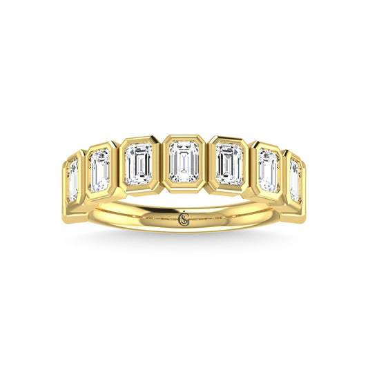 14K Yellow Gold Diamond 1 3/4 Ct.Tw. Emerald Shape Half Way Bezel Band