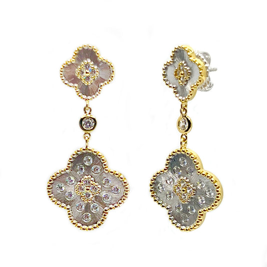 Clover-pattern Pear shape Drop Vermeil Earrings