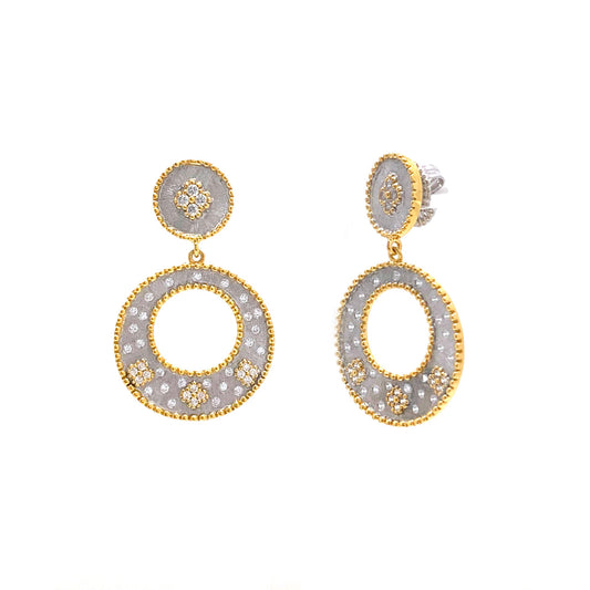 Small Clover-pattern Open Circle-shape Drop Vermeil Earrings