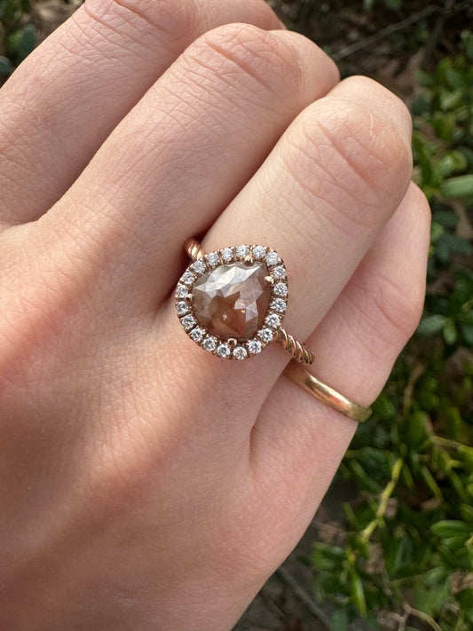 Sold outHalo Cream Diamond Rose Gold Ring