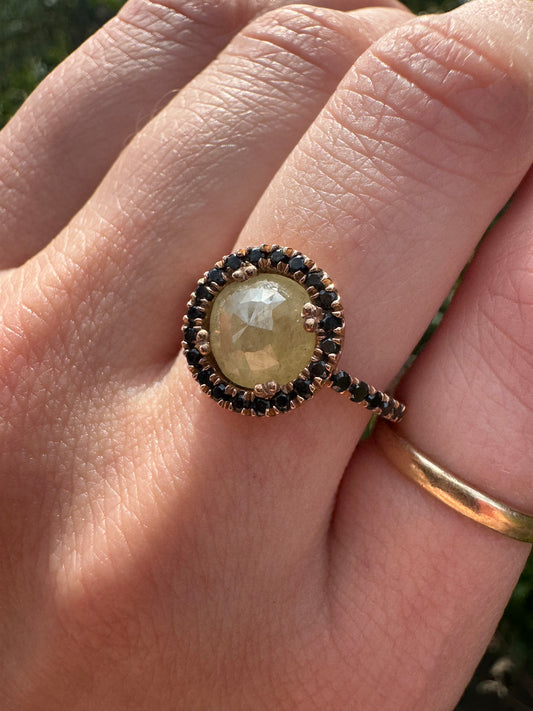 Round Salt and Pepper Diamond Ring
