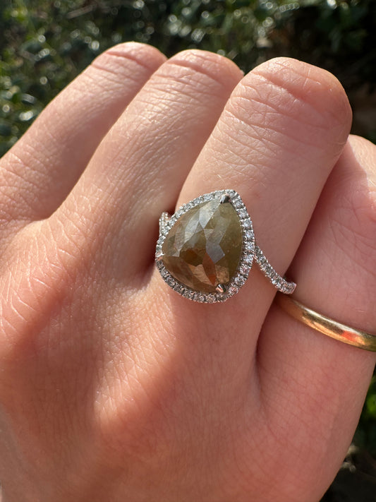 Sold outPear Salt and Pepper Diamond Ring