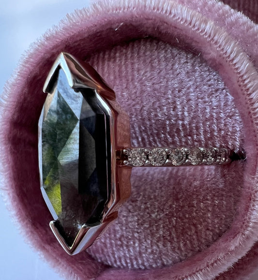 Hexagon Salt and Pepper Diamond Ring