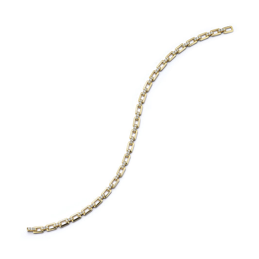 Small Gold Link Bracelet with Pave Diamond Bar Connection