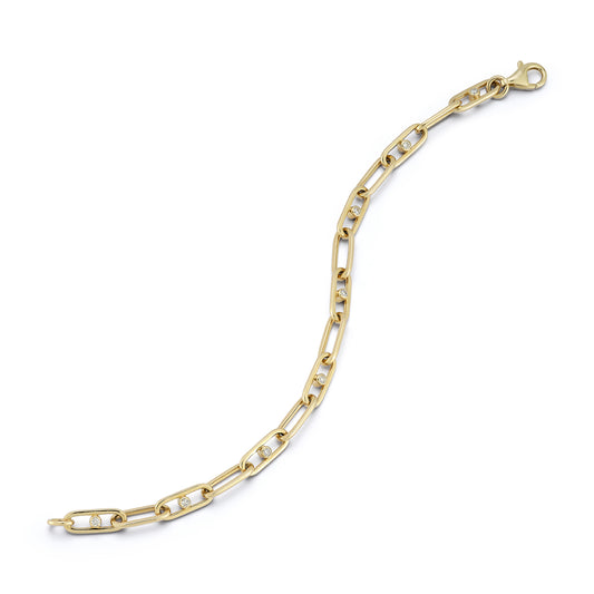 Gold Paperclip Bracelet with Diamond In Every Other Link