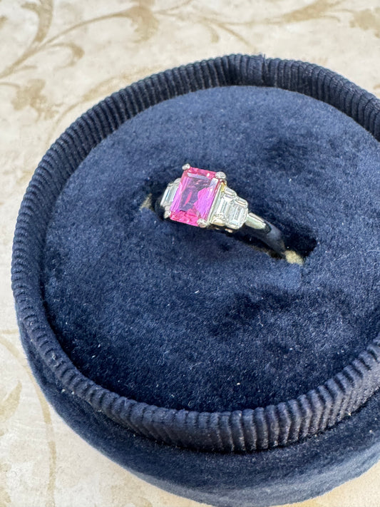 Pink Sapphire and Diamond 3 Stone Ring