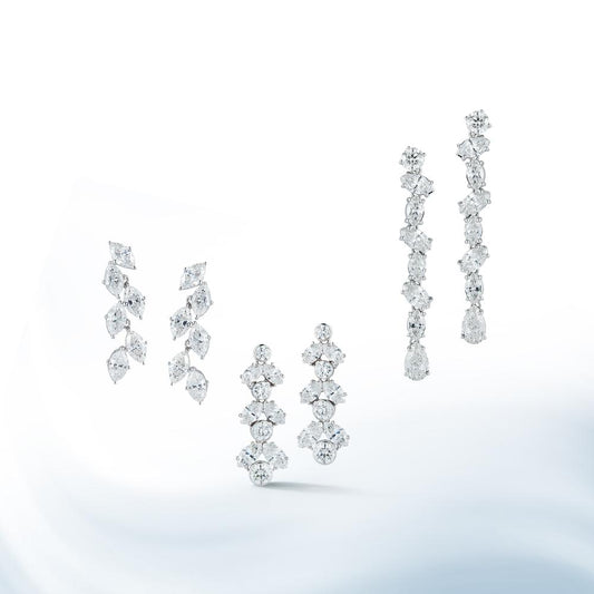 Diamond Pave Huggie with Alternating Bezel Pear and Oval Diamond Drop Earrings