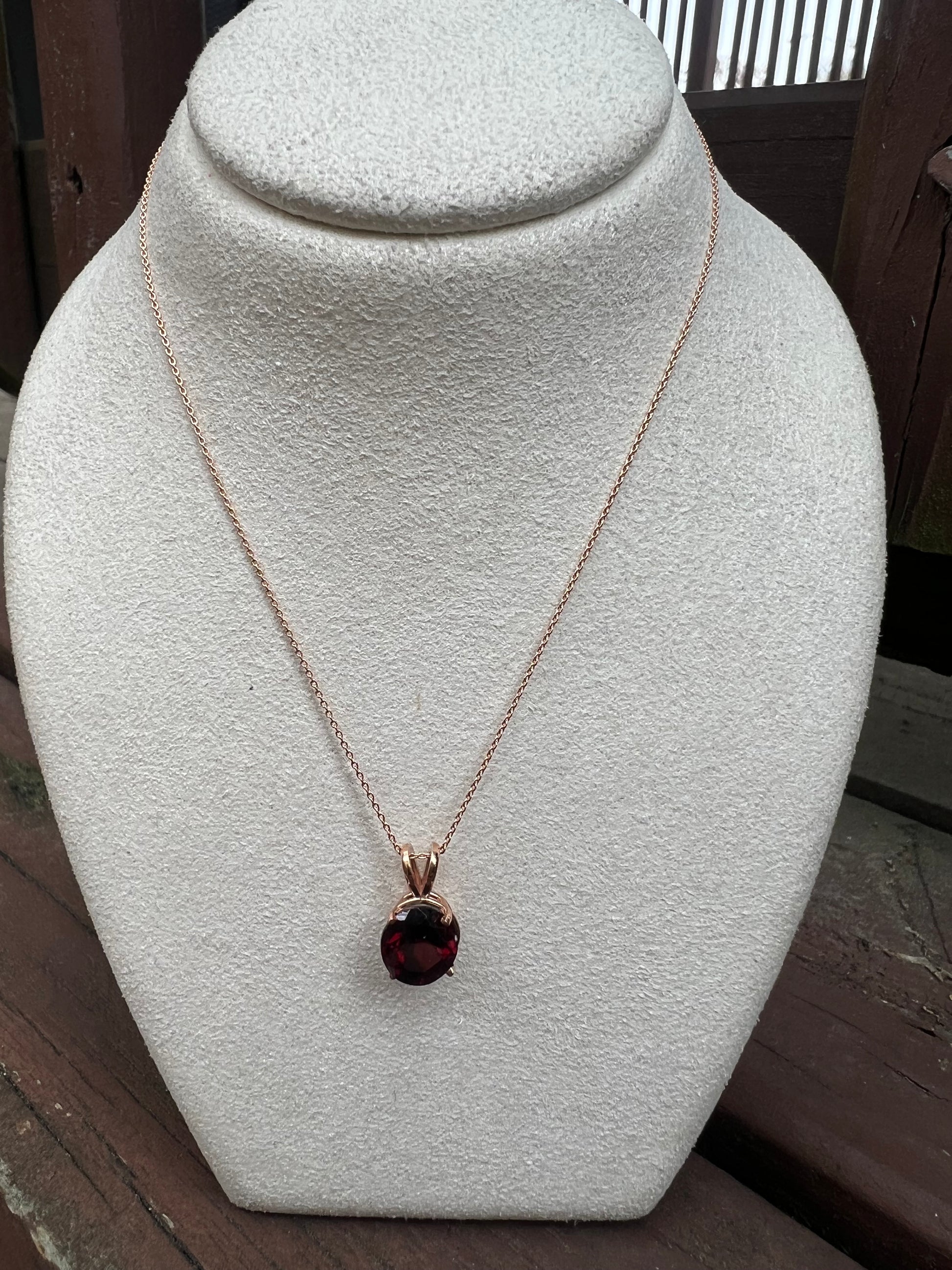 -14kt Rose Gold Pendant-Round Garnet Stone