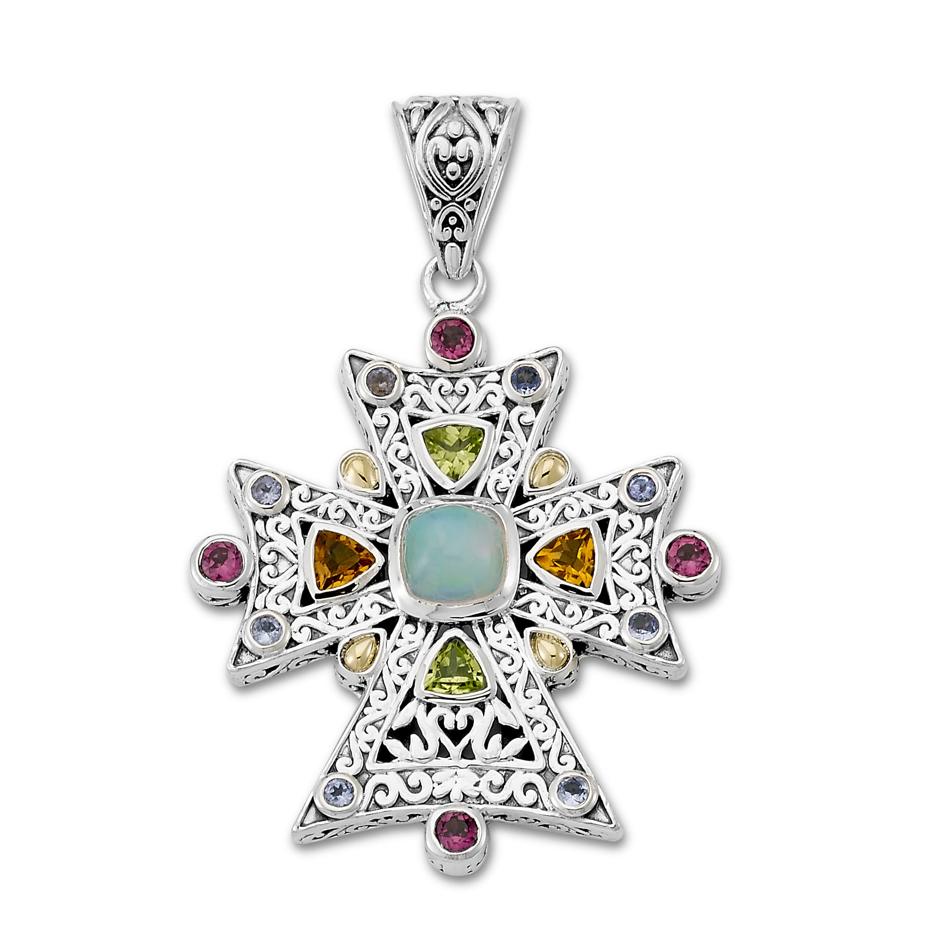 Be a beacon of style with the Samuel B Esperanza Pendant! Crafted from sterling silver and adorned with multi-colored gemstones, this Bali-made cross-shaped necklace will add a dose of statement-making shine to any ensemble. Shine on!