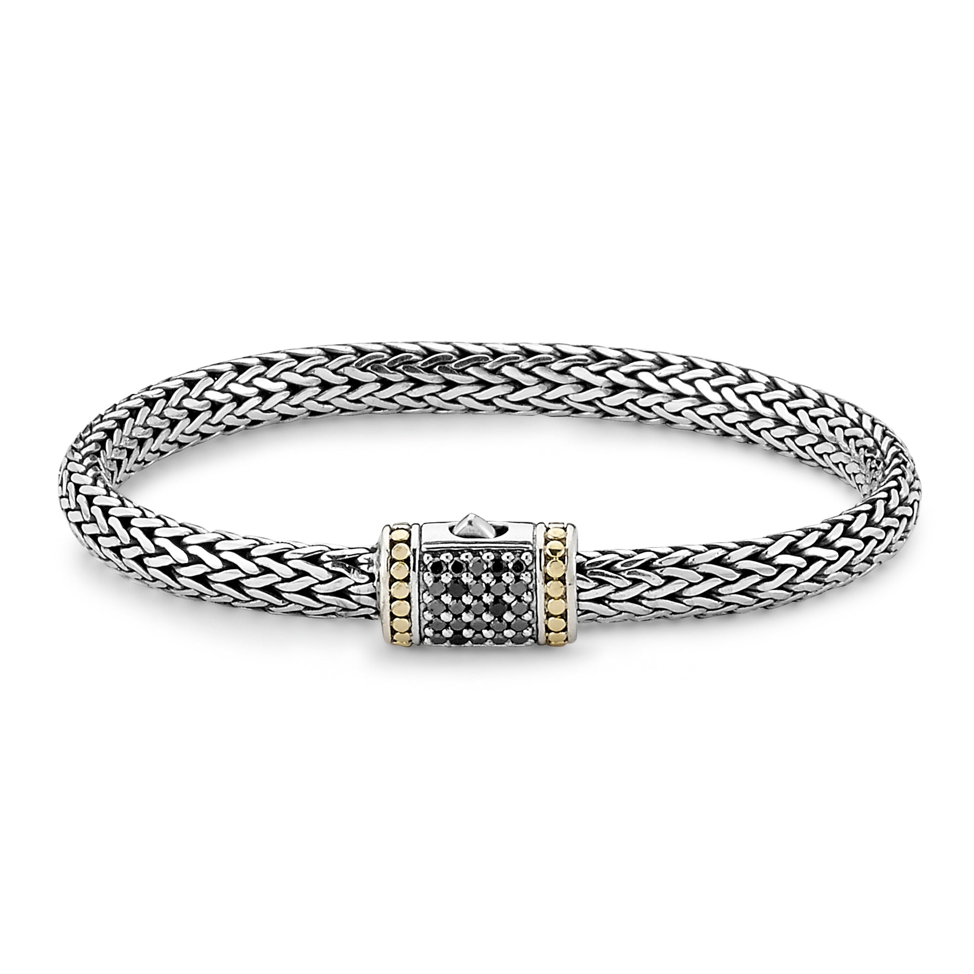 Our Sterling Silver 18k solid Gold Black Diamond pave bracelet, handcrafted in Bali by our skilled artisans. From our signature collection, Royal Bali™ featuring designs handcrafted using sterling silver, solid 18k gold accents and genuine gemstones.